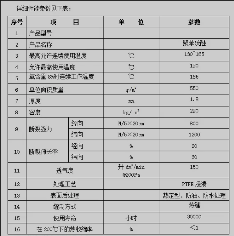 滤袋材质:PPS(PTFE基布)